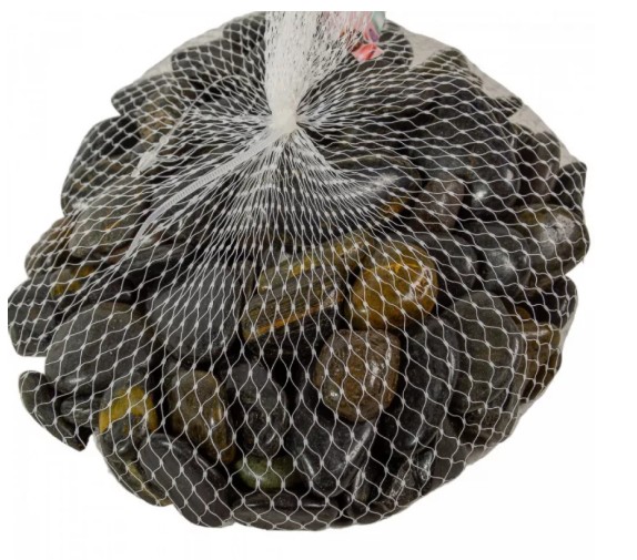 Nagyobb szemű, magasfényű, fekete dekorkavicsok, kövek.