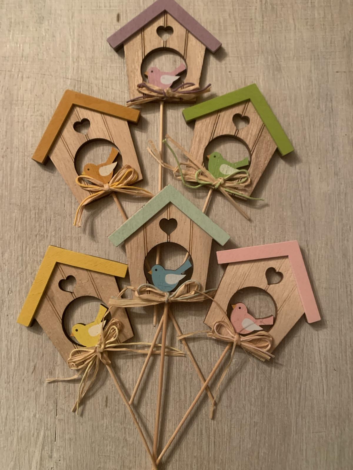 Szobai növények mellé virágcserepébe vagy akár kiskertekbe, virágoskertekbe is leszúrható vidám kismadár házikóban.