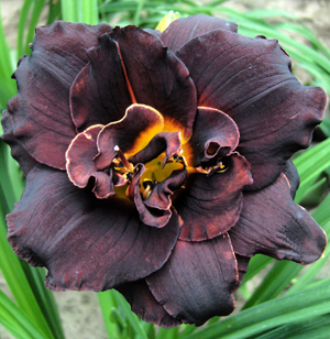 Gyűjtői ritkaságú: az eddigi legselymesebb szirmok és legsötétebb színek a sásliliom hibrideknél. Dekoartív levelei között nyílnak gyönyörű telt virágai bíbor-fekete színekben pompáznak míg közepük, porzóik csillogóan aranysárgák. Elvarázsoló s vadító kontrasztot alkotnak.