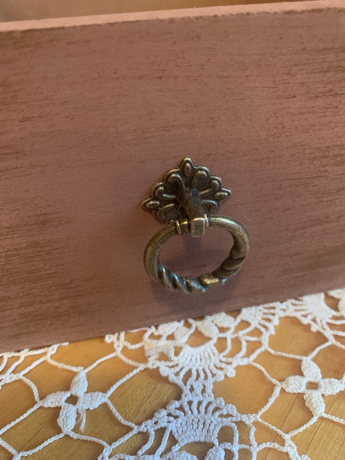 Mézbarna színben. Romantikus hangulatát a kis réz fogantyú adja meg.