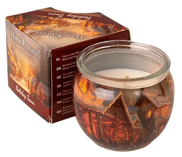 Karácsonyi, ünnepi hangulatú poharas illatmécses.