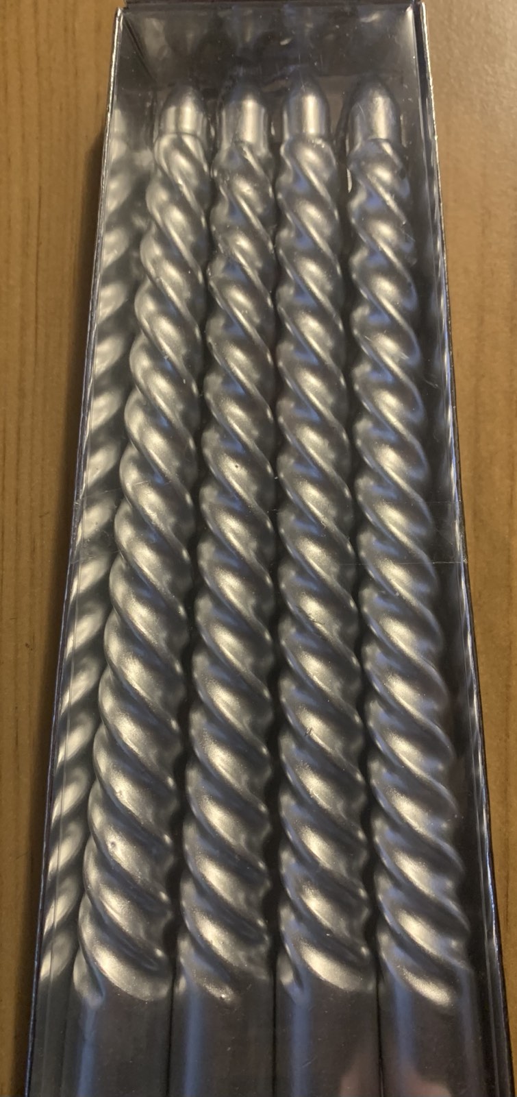 Ezüst színű csavart, szálas gyertya szett