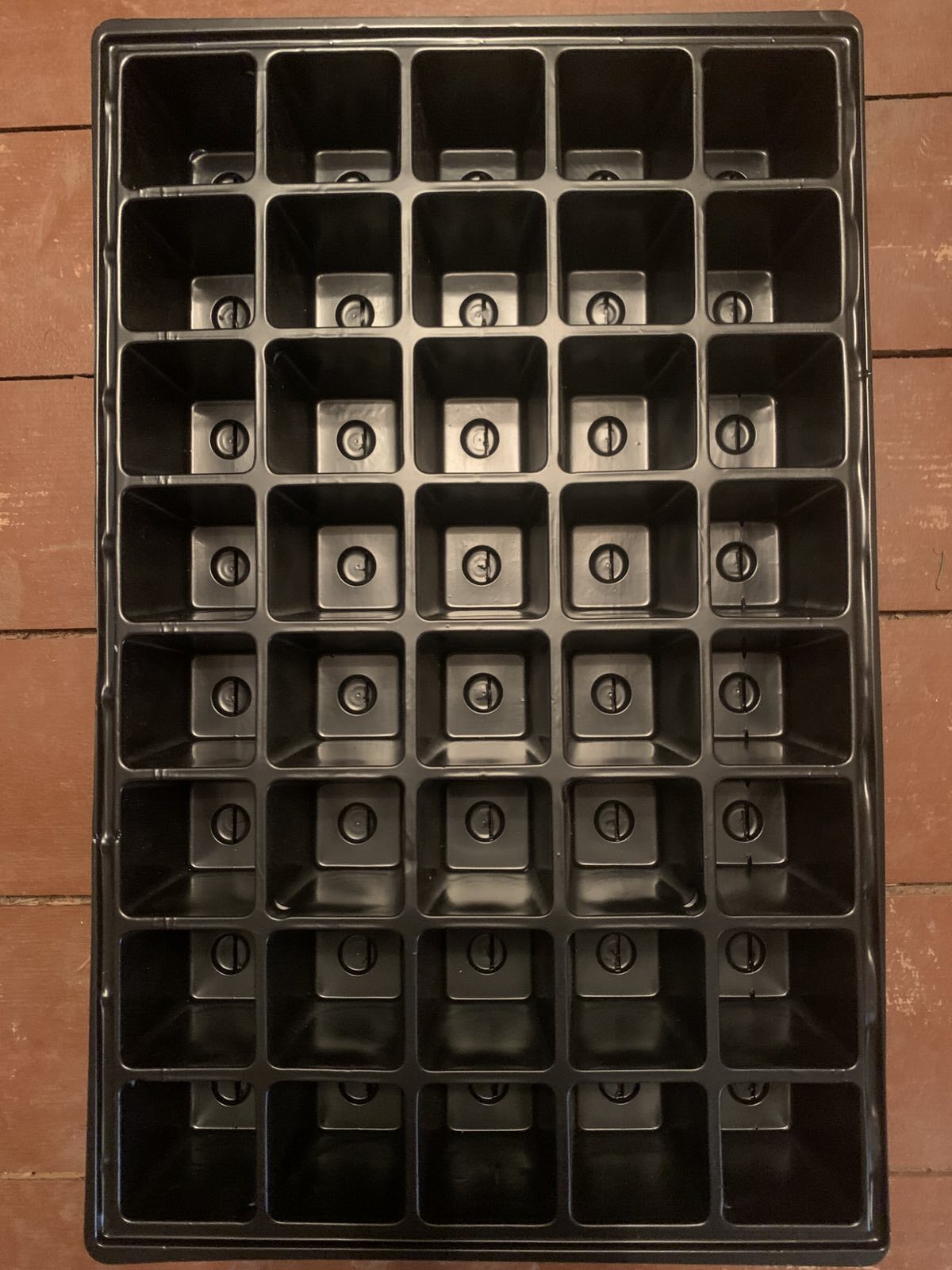 Műanyagból készült szaporító tálca magvetésekhez, fekete színben.