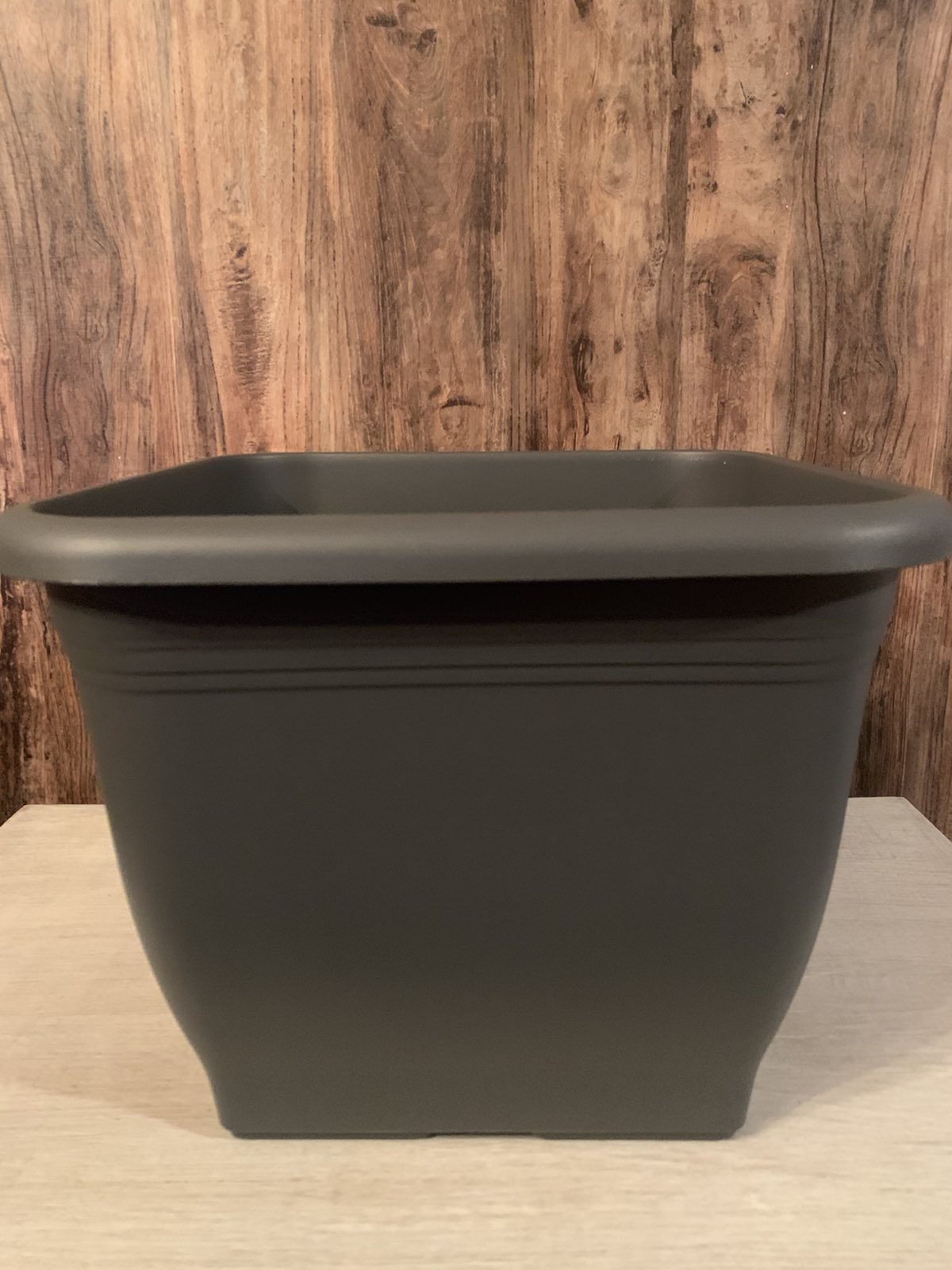 Műanyag virágcserép antracit színben.